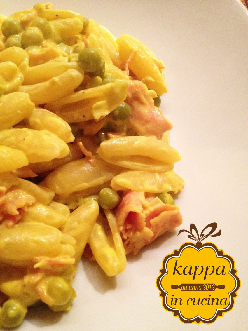 1 Novembre 2012 at 11:33Trovo che la panna con lo zafferano diano una salsa irresistibile….il prosciutto e i piselli completano il gusto di questa pasta a dir poco golosa.